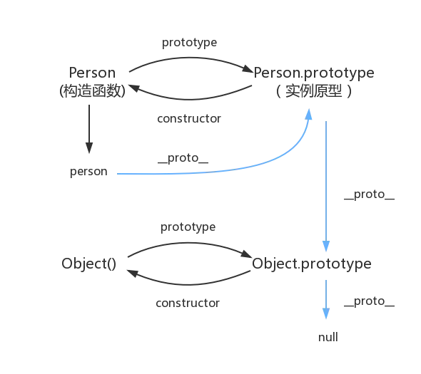 person.constructor === Person //trueJavaScript的原型链是实现对象继承的核心机制,简单来说,每一个对象都有一个原型,通过 __proto 属性指向该对象的原型,通常是Object.prototype,同时该对象的原型也拥有原型,直至 __proto 属性指向 null,形成了一条完整的链式结构,就形成了原型链。